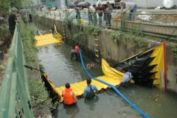İlk önce yukarı akış batardamını kuruyoruz (bkz. #1 nolu durum, dikey batardo). Akış aşağı batardo genellikle daha düşük olabilir. Yukarı akış, esnek sandık barajlarının altına döşenen bir boru yoluyla veya pompalar aracılığıyla yönlendirilebilir. - Durgun suda kurulum