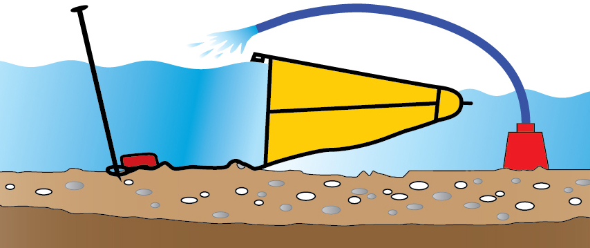 Sakin suda, batardolar ön kenarı suyun dibine sabitlenerek önceden konumlandırılır. Bağlama, batardo pompalama ile tamamen basınçlandırılana kadar kanvasın hareketini önlemek için ön kenardaki metal halkalara yerleştirilen kazıklar kullanılarak yapılır.